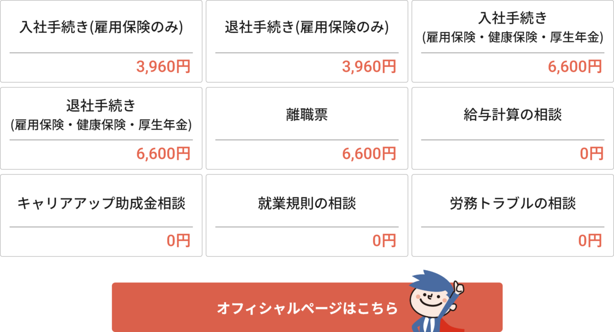 労働保険料の申告納付手続を申請代行します。健保組合などの場合は別途費用が必要です。該当する場合は担当よりご案内します。